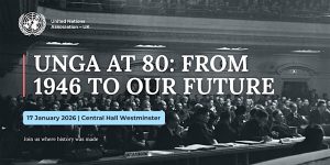 On 17th January, 2026, 12:00-17:00, UNA-UK is celebrating UNGA at 80, marking the 80th anniversary of the first meeting of the UN General Assembly, in Methodist Central Hall, Westminster, with panels on Peace, Security and Justice, Addressing Planetary Challenges, A UN Fit for Future Generations. This will be attended by leaders in international cooperation from the UK and around the world. Registration is here; please make a generous donation to help cover the costs.